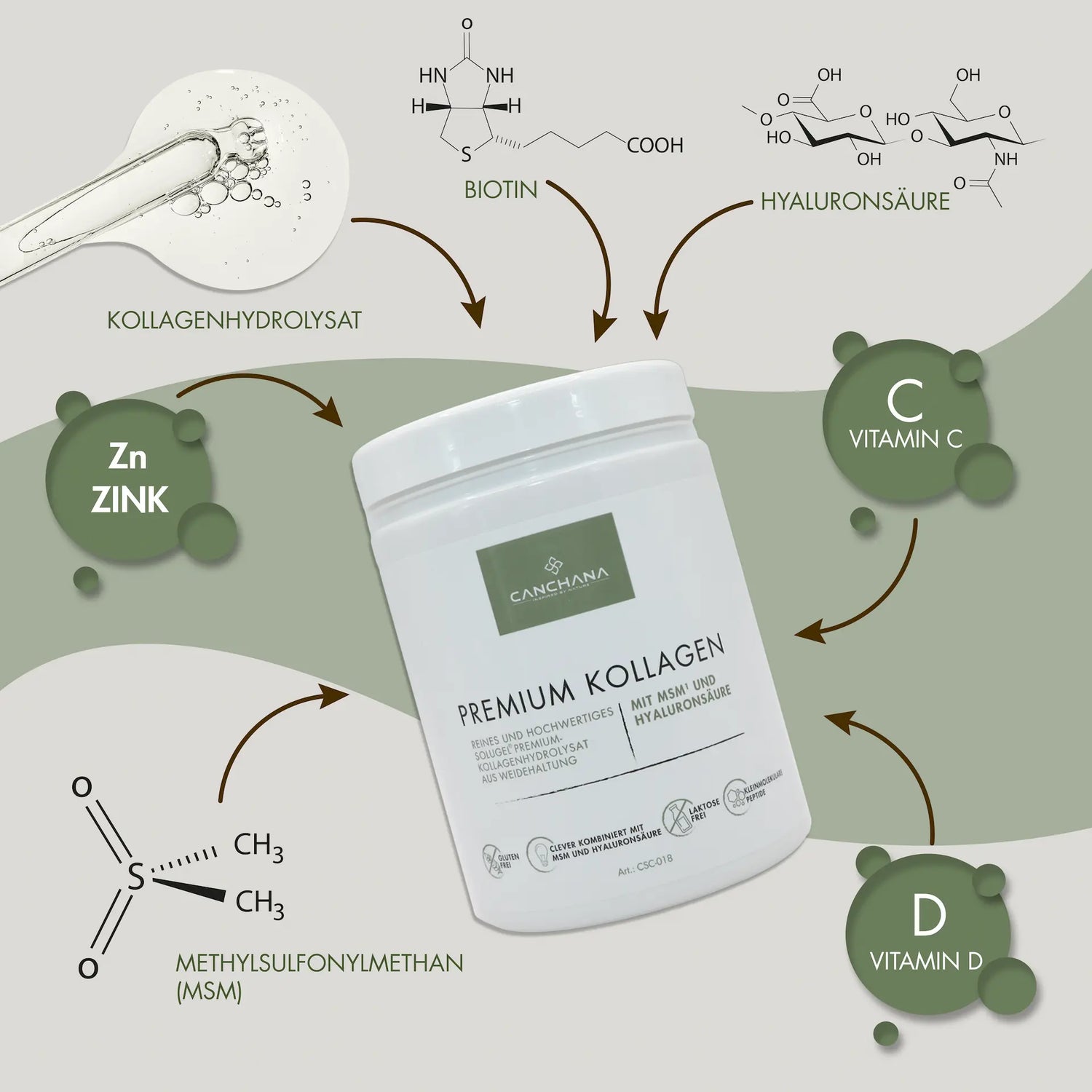 - Synergie in der Formel – ergänzt Kollagen, MSM und weitere Nährstoffe in Canchana Premium Kollage