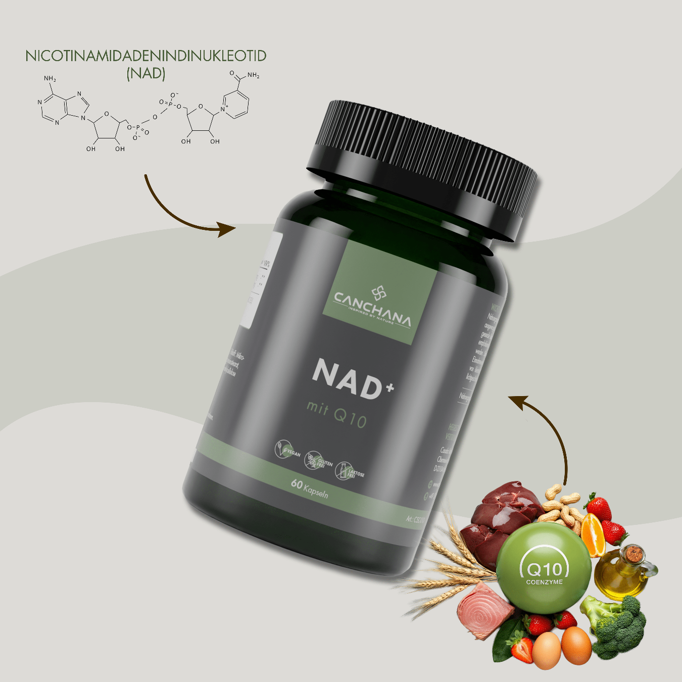 • NAD+ – eine körpereigene Substanz, die in zahlreichen Stoffwechselprozessen eine Rolle spielt.